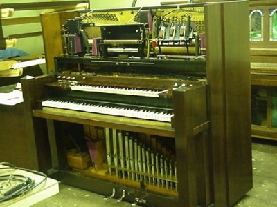 The player was completely restored, including new pouches, valves, pneumatics, gaskets and rubber tubing.