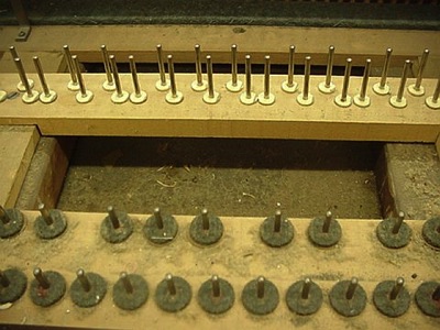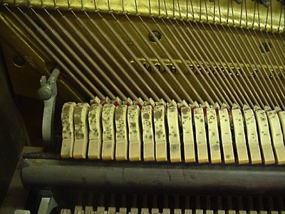 Mildew attacked the bass hammers due to excessive humidity where the piano was stored.