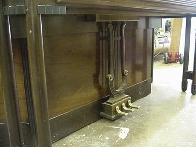 The grand style pedal lyre is attractive but obstructs access to the bottom of the piano.