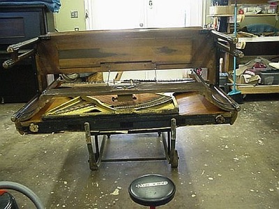 The case has the usual marks of a church piano, compounded by the fact that the piano was built without casters.